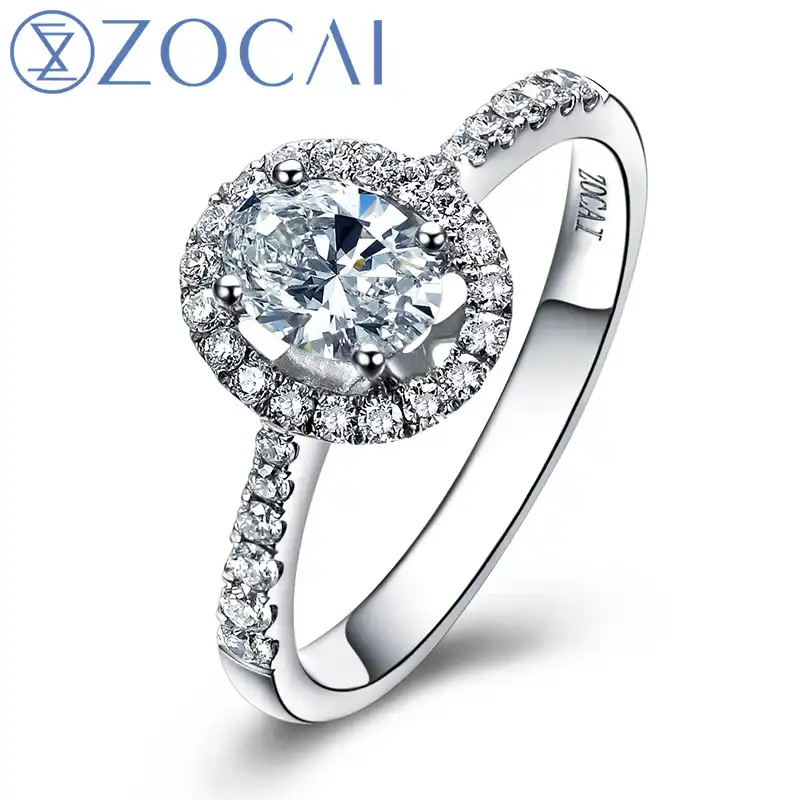 Zocai Vintage Sidestone 0 6 Ct Natural H Si Oval Cut Floating Halo Diamond Engagement Ring 18k White Gold W03263