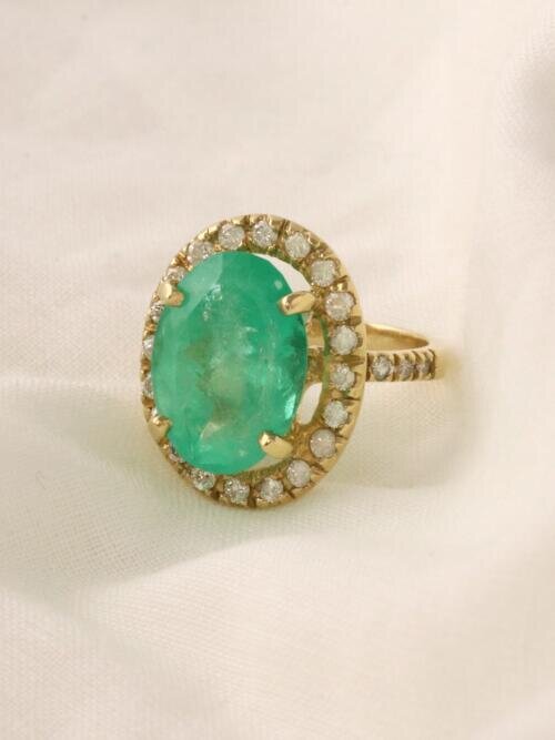One Of A Kind 7 54ct Natural Emerald Floating Diamond Halo Cocktail Engagement Ring