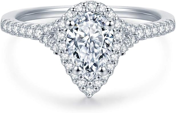 Pear Cut Petite Micropave Floating Halo Simulated Diamond Cz Micropave Floating Halo Wedding Engagement Rings Women Girls 2 08ctw