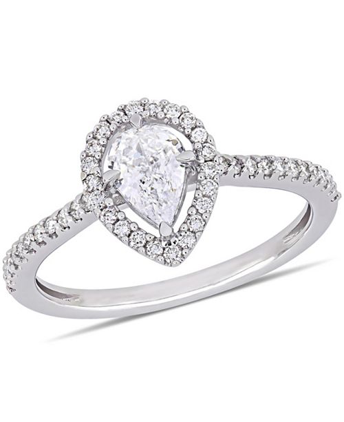 0 75 Ct T W Pear Cut Diamond Floating Halo Engagement Ring In 14k White Gold