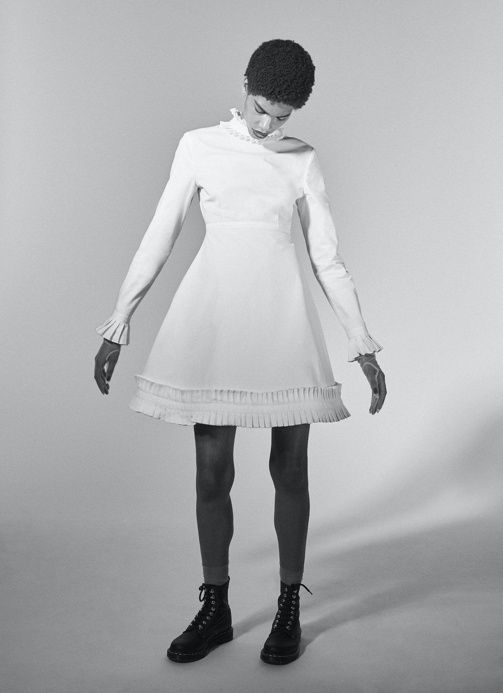 "Before I started my own brand, my uniform was the color black. I categorized my personal style into two distinct and polar opposite forms. The first one, form fitting dresses that hit either mid-calf or the opposite: a dramatic, short skirt. I switched between those silhouettes and a cropped trouser and button-up shirt that had extra adornments on it with a flatform shoe."